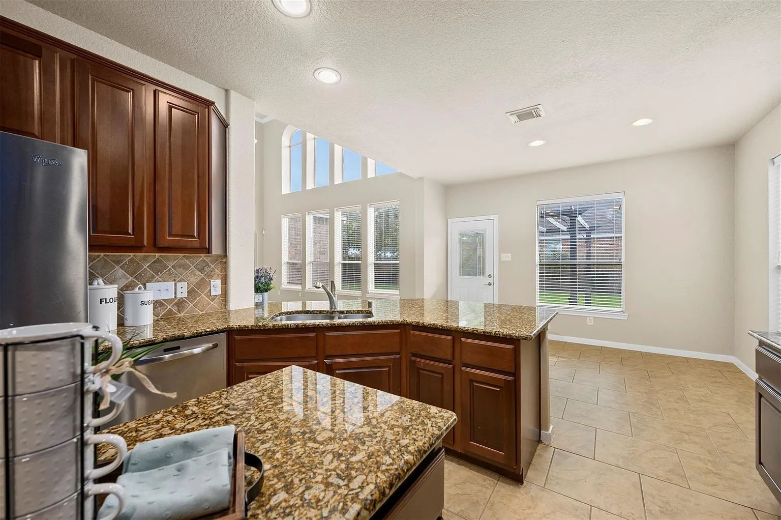 The beautifully designed kitchen features granite countertops and a cozy breakfast area, ideal for casual dining. Wood floors enhance the elegance of the dining room and study, while the thoughtfully planned layout ensures comfort and convenience for everyday living.