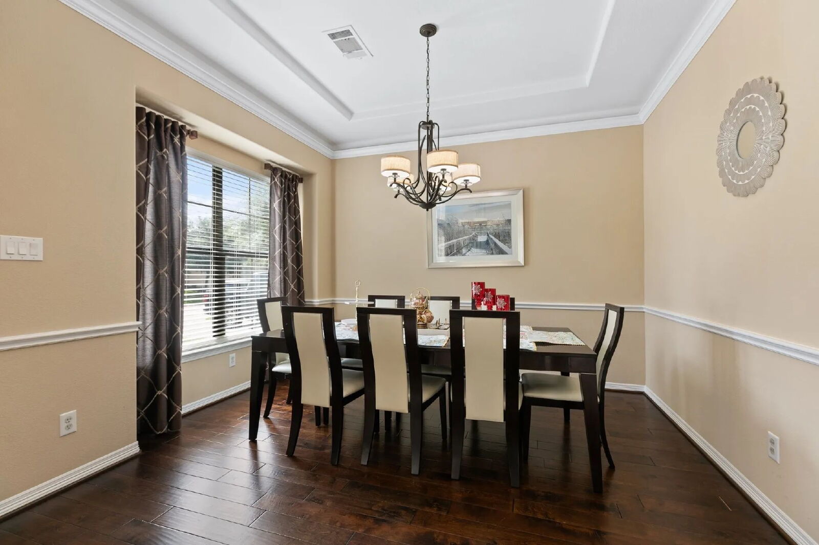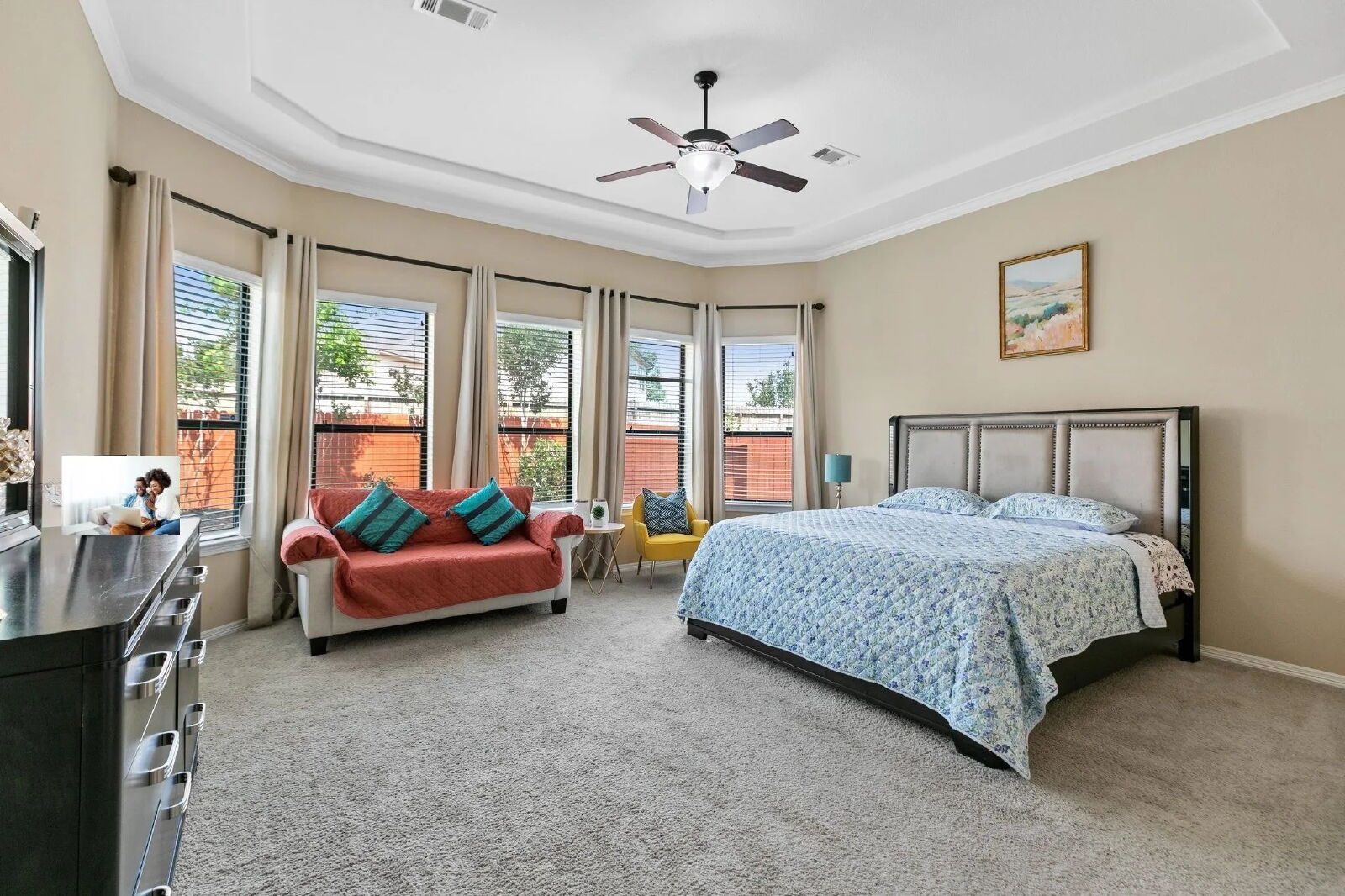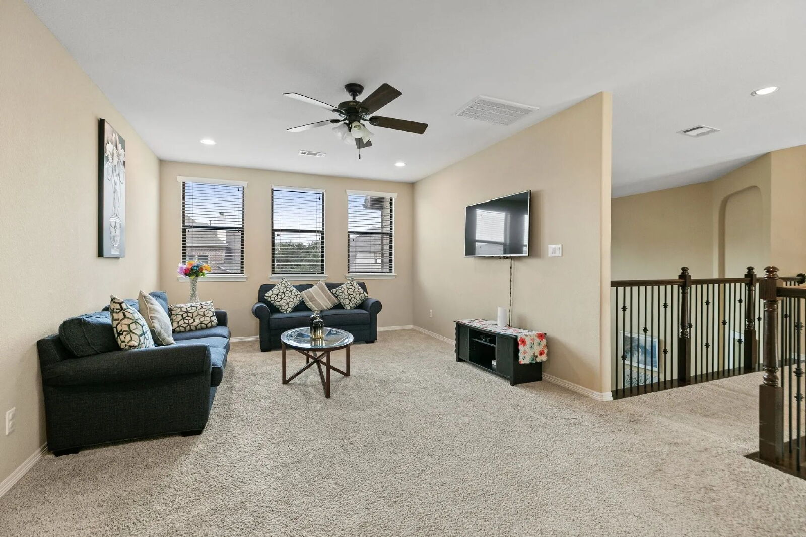 The primary suite is conveniently located on the first floor and offers double vanities, a relaxing soaking tub, and a generous walk-in closet. Upstairs, you’ll find a versatile game room along with three additional bedrooms.